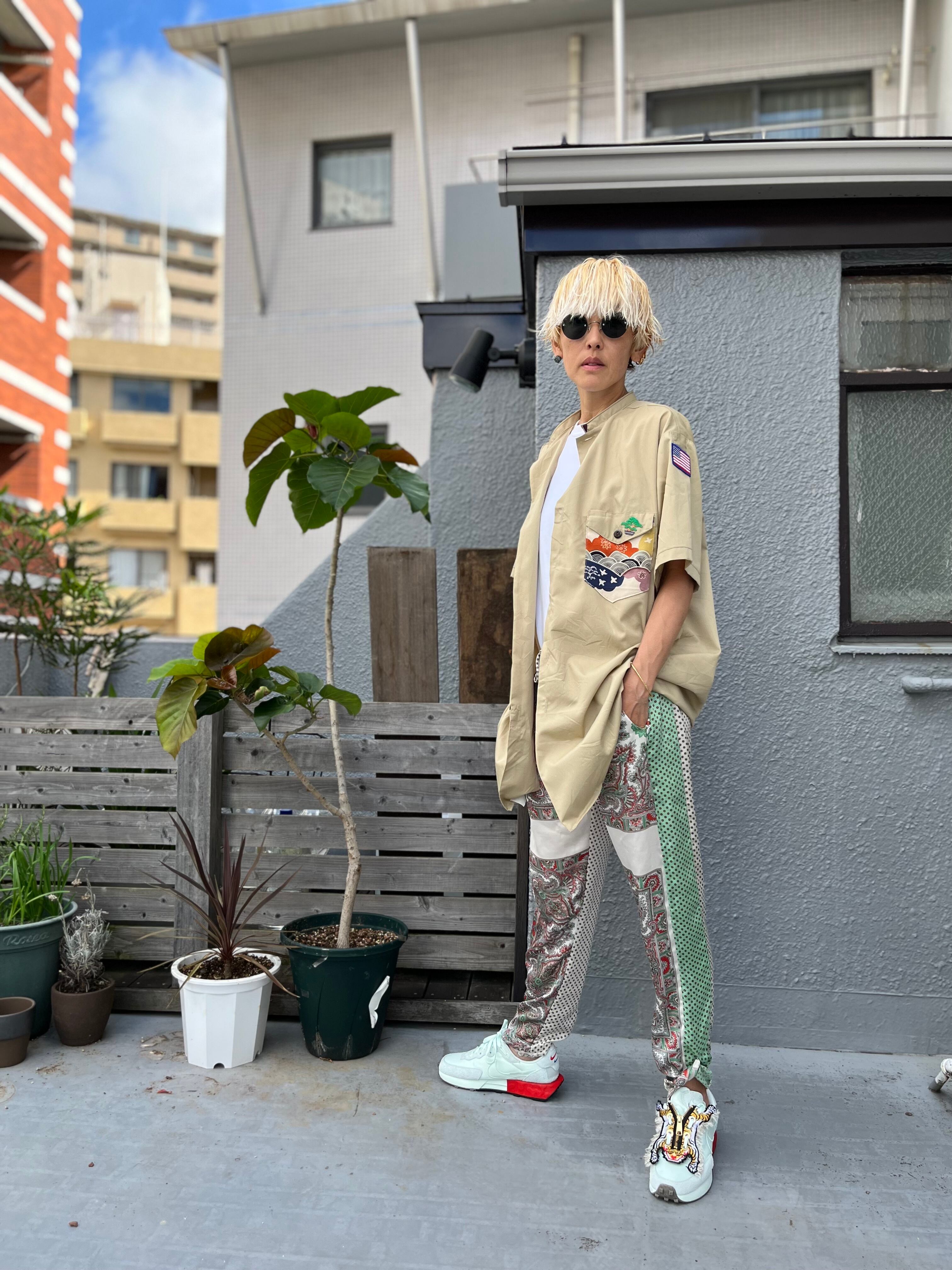 スタンドカラーにリメイクし半袖仕様にしたシャツに
