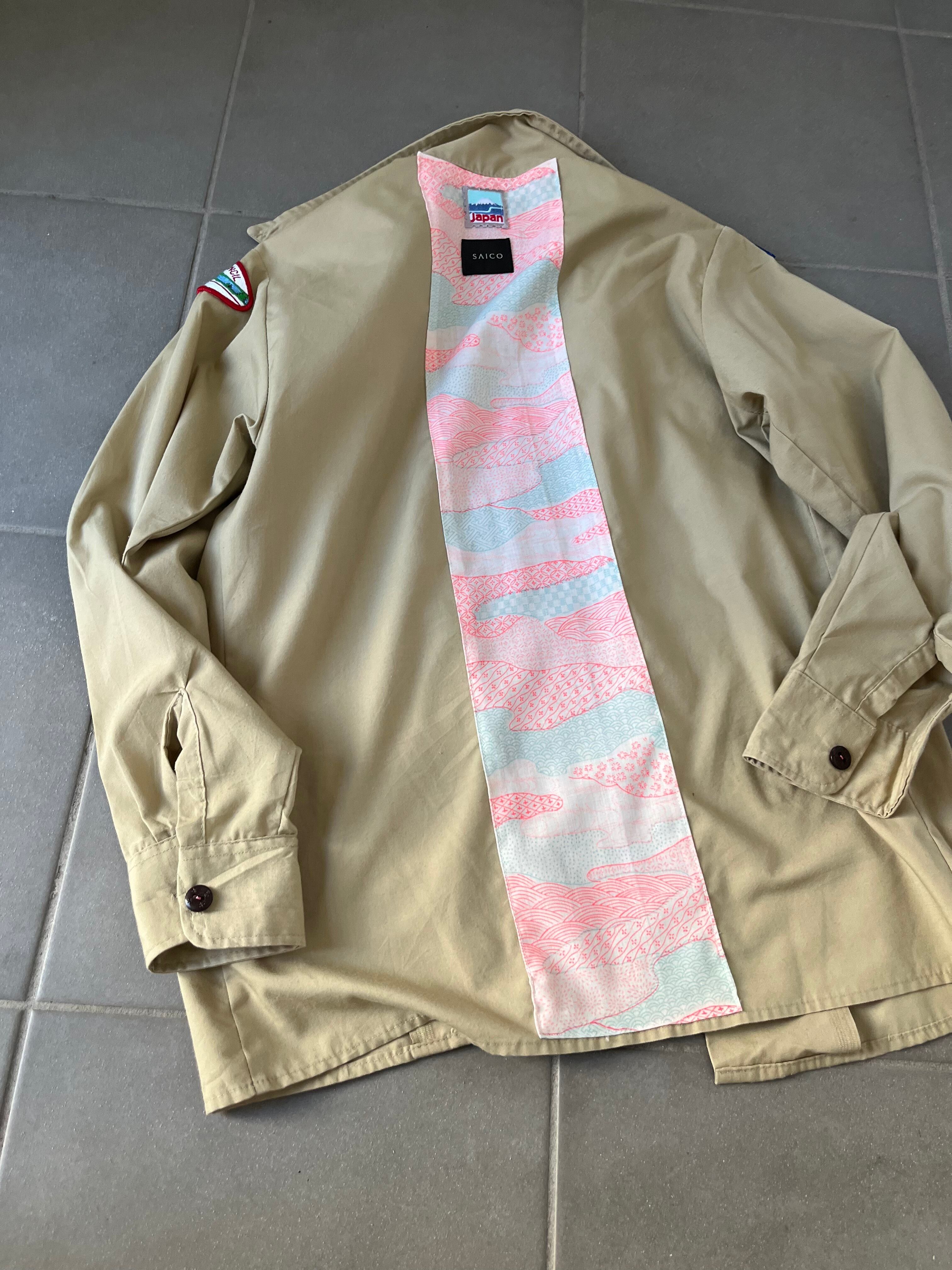 ボーイスカウトシャツリユース 着物パッチワーク リメイクシャツ