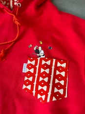 着用時にベルトやバックなどの引っ掛かりや 摩擦にご注意ください、万が一刺繍がほつれた時は引っ張らずに、そのままご使用になるか、気になる方はハサミなどでカットしてください