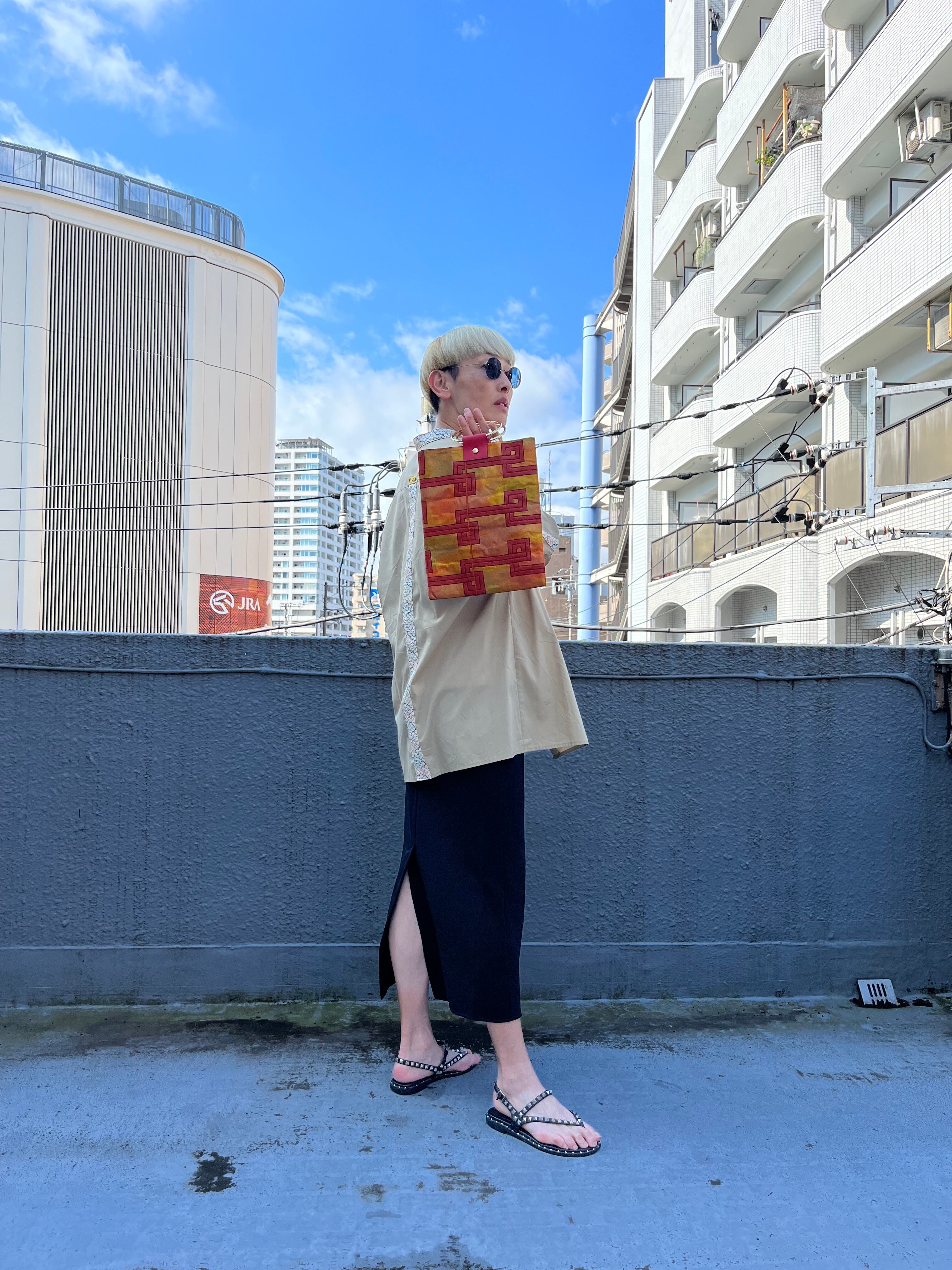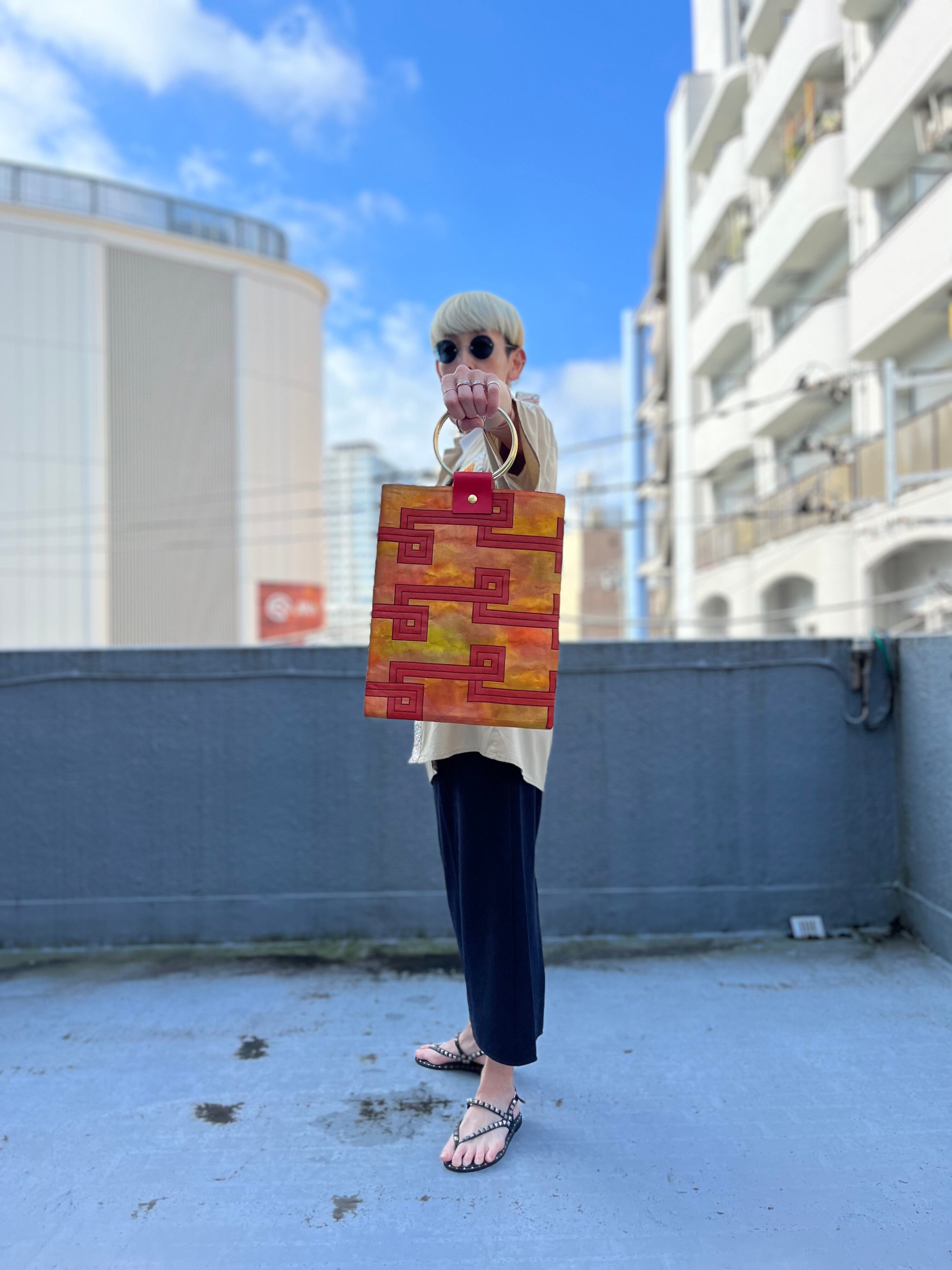1点もの 帯メタルハンドルバック 帯リユースバック 紅緋バック