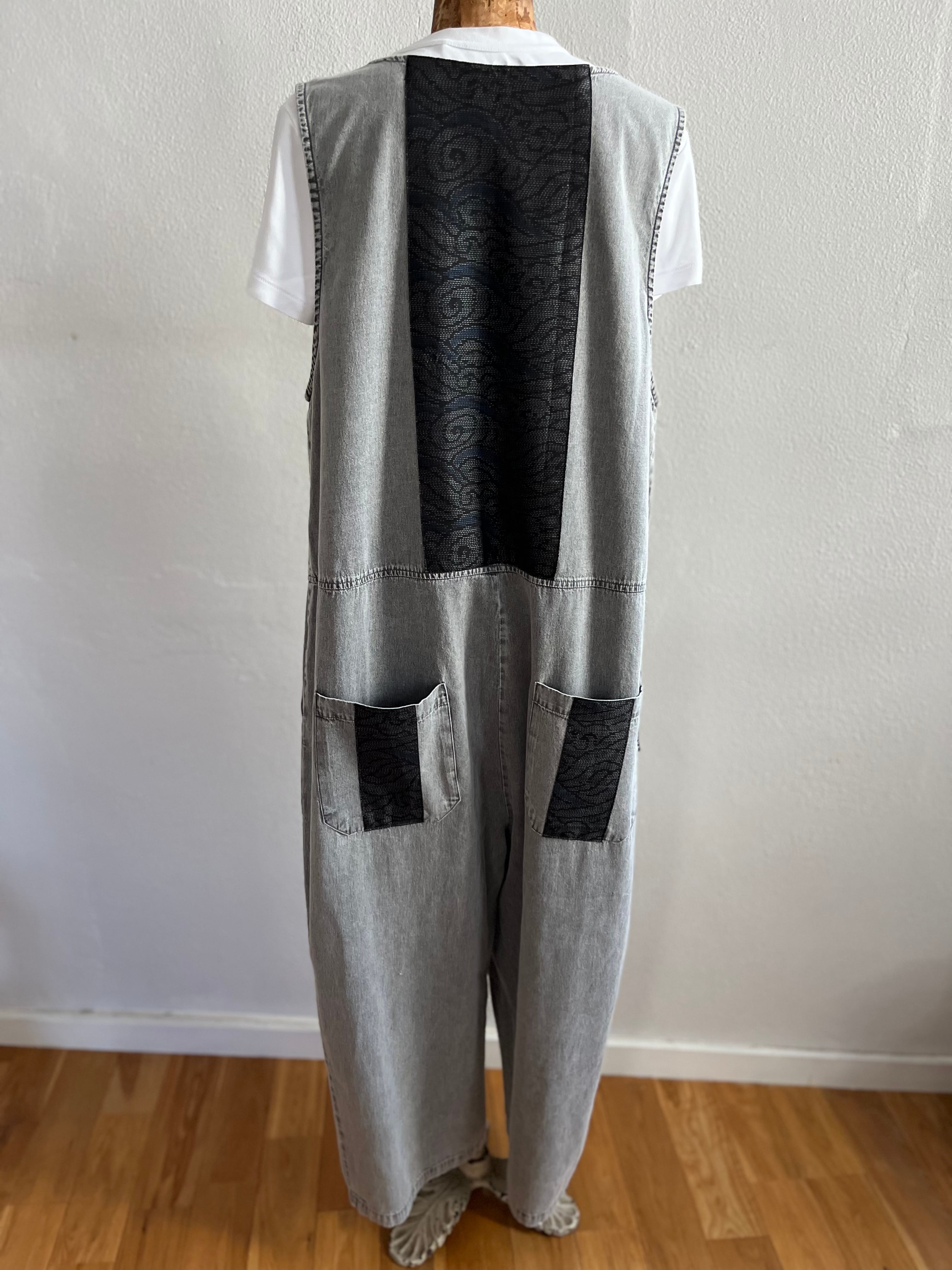 ユニセックス 大島紬パッチワーク サロペット 紬パッチワーク 着物リメイク