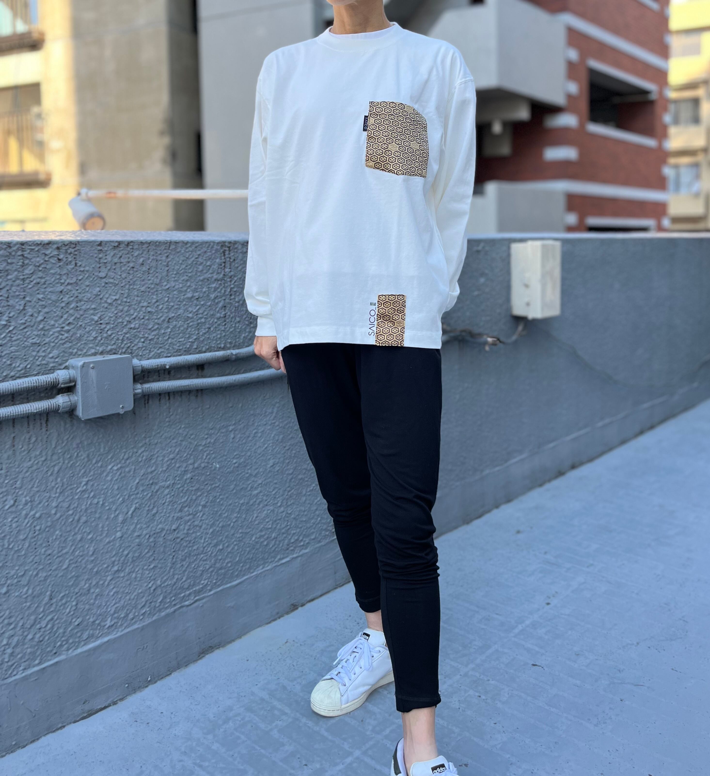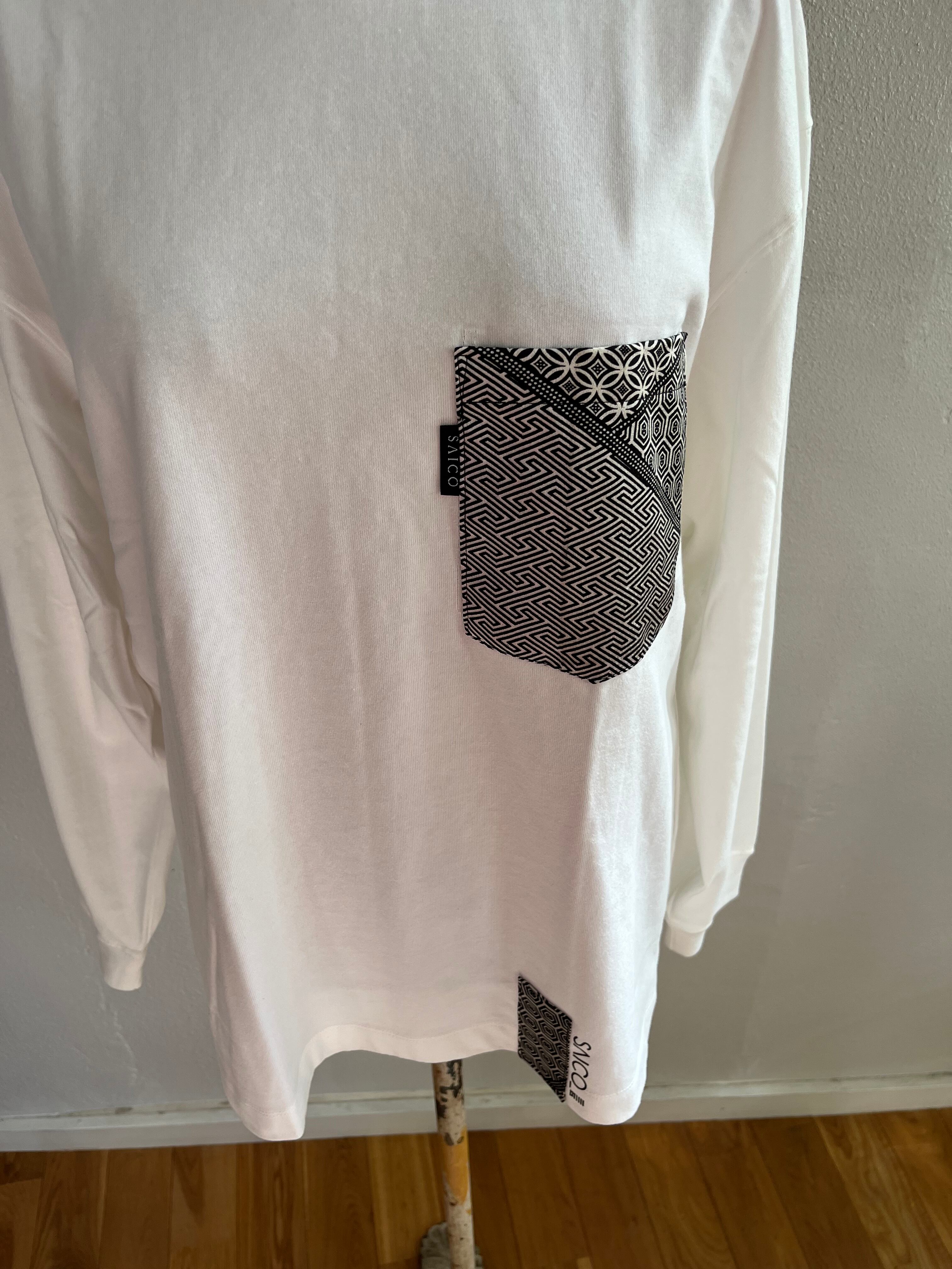 着物ポッケロングTシャツ 着物パッチワークTシャツ 着物リユース メンズM size