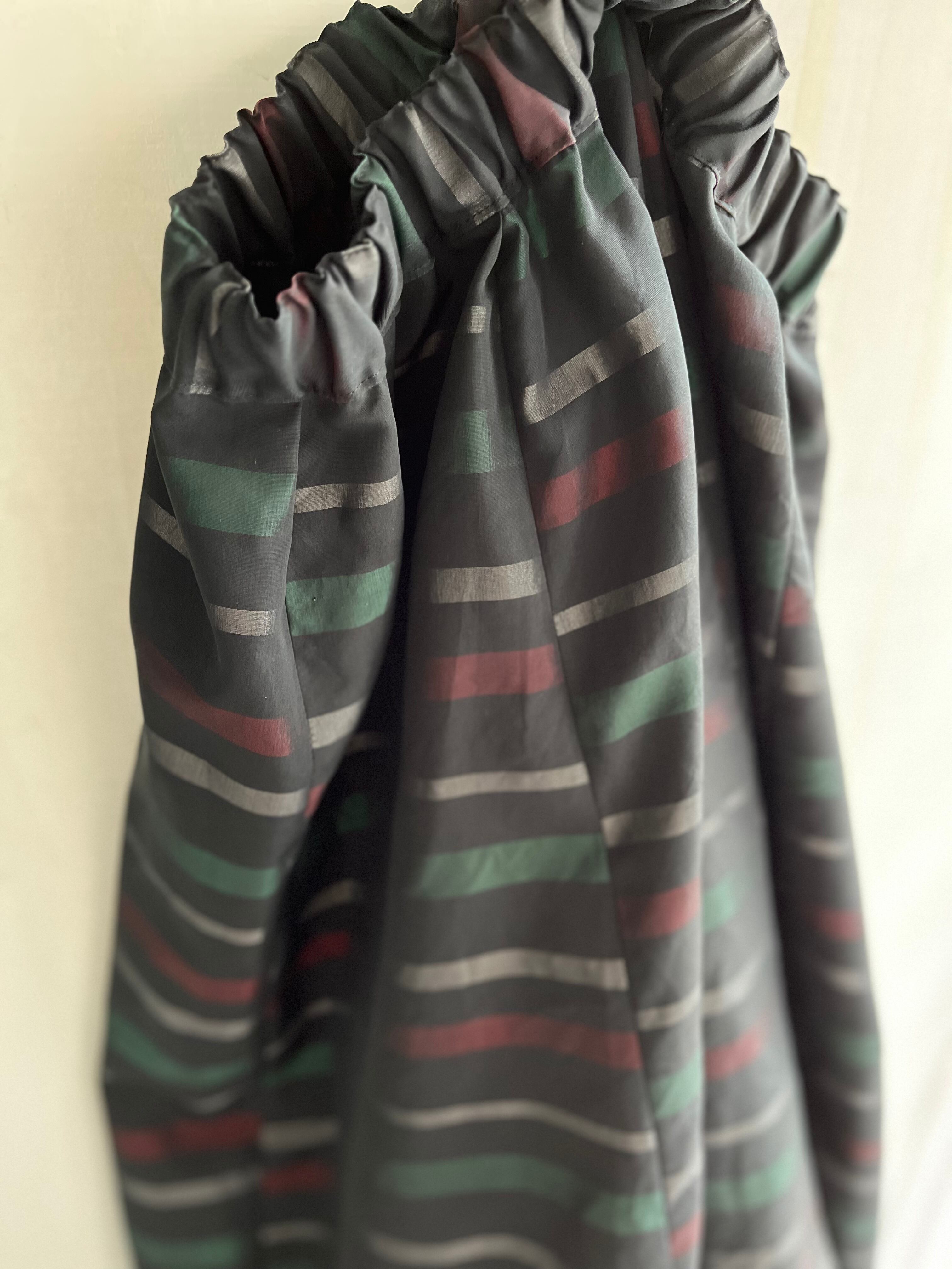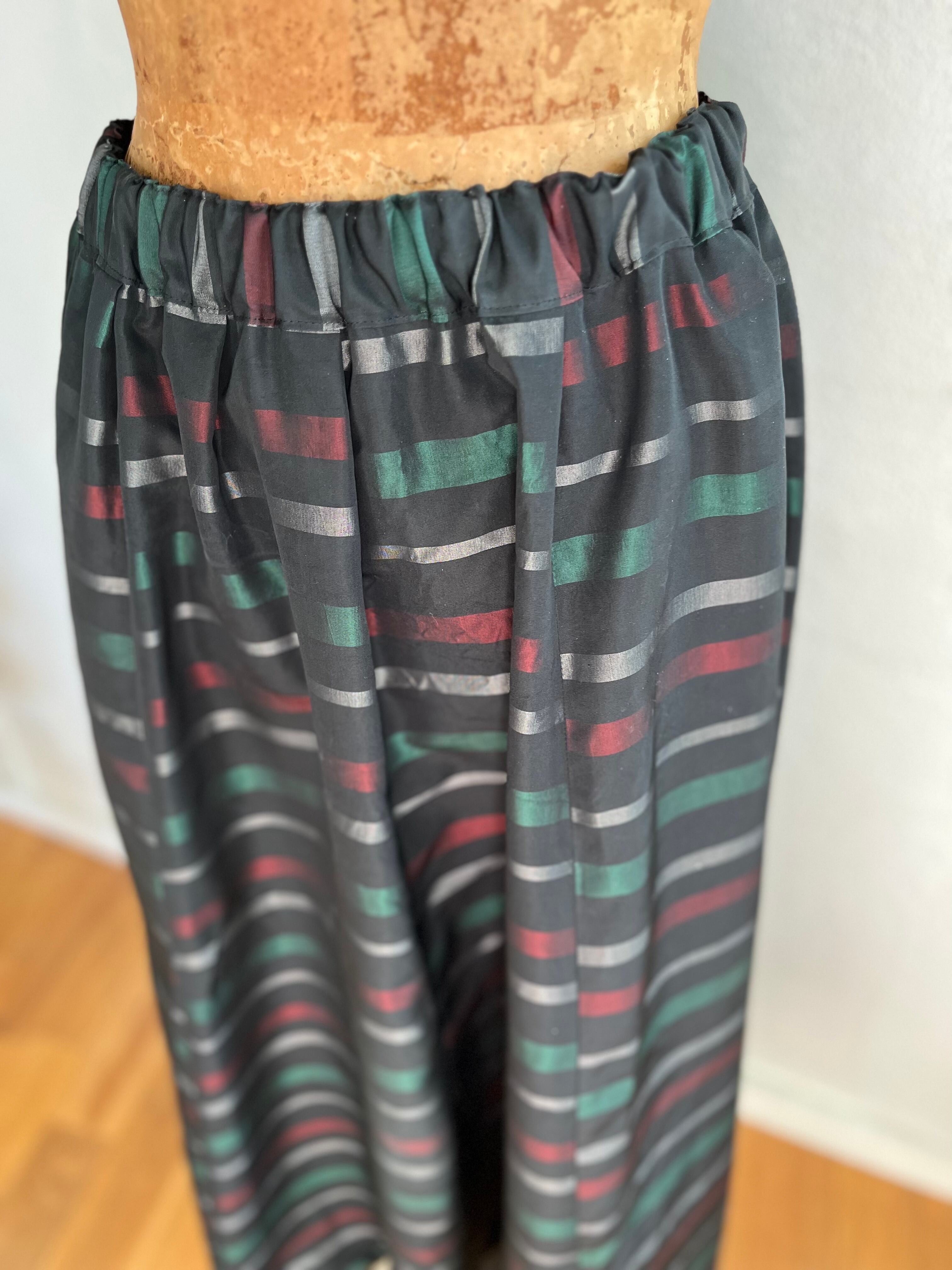 セミオーダー 1点もの Xmasカラー横縞紬リユース ギャザーマキシスカート (ご希望丈長さでのお渡し)