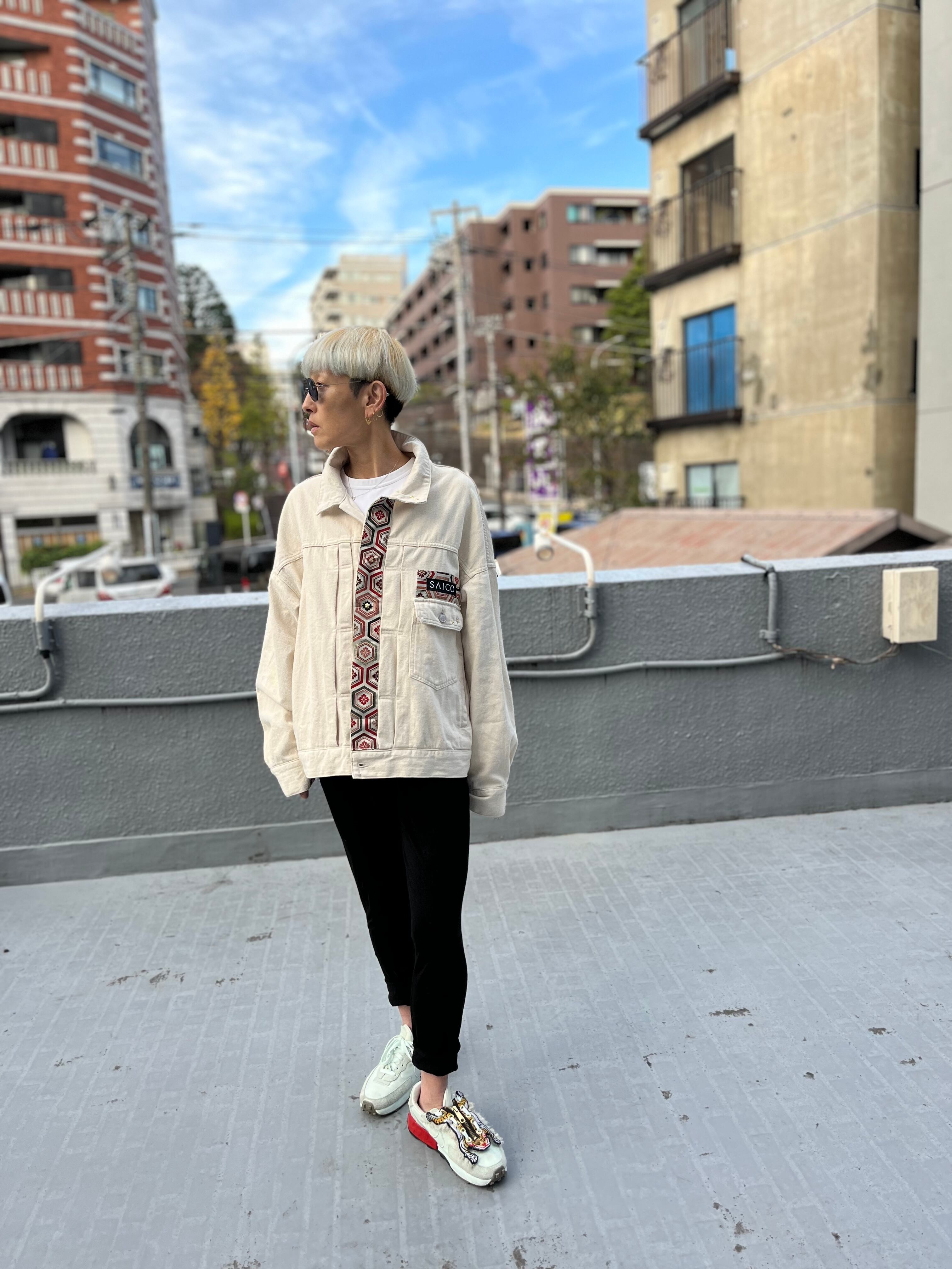 コットンJK メンズMサイズ 着物リメイク 帯パッチワークJK USEDジャケット