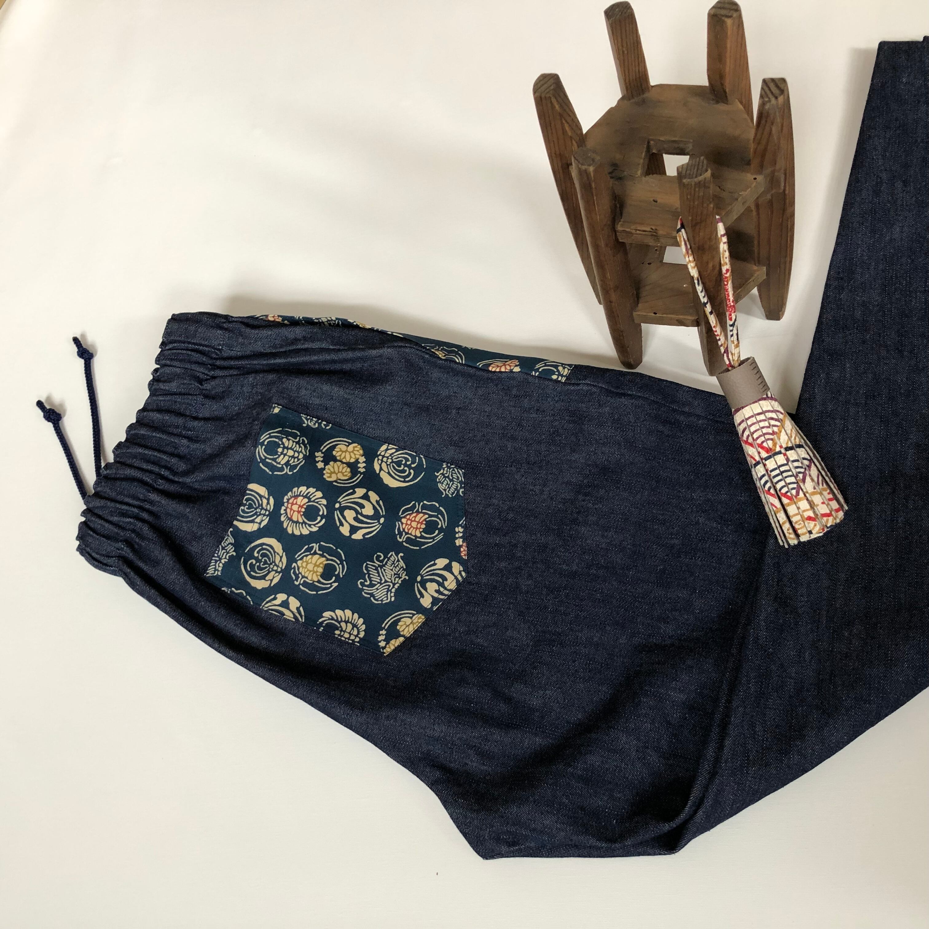 デニムパンツ 着物リユースデカポケット ユニセックス フリーサイズ
