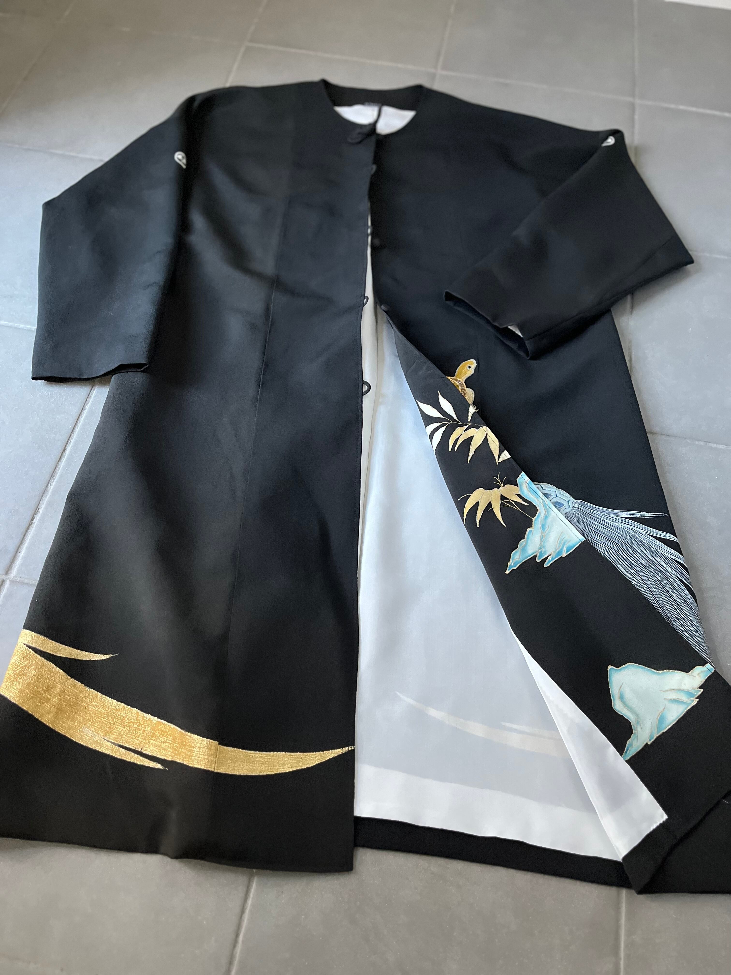 1点もの 蓑亀_minokame コート 黒留袖リユースノーカラーコート
