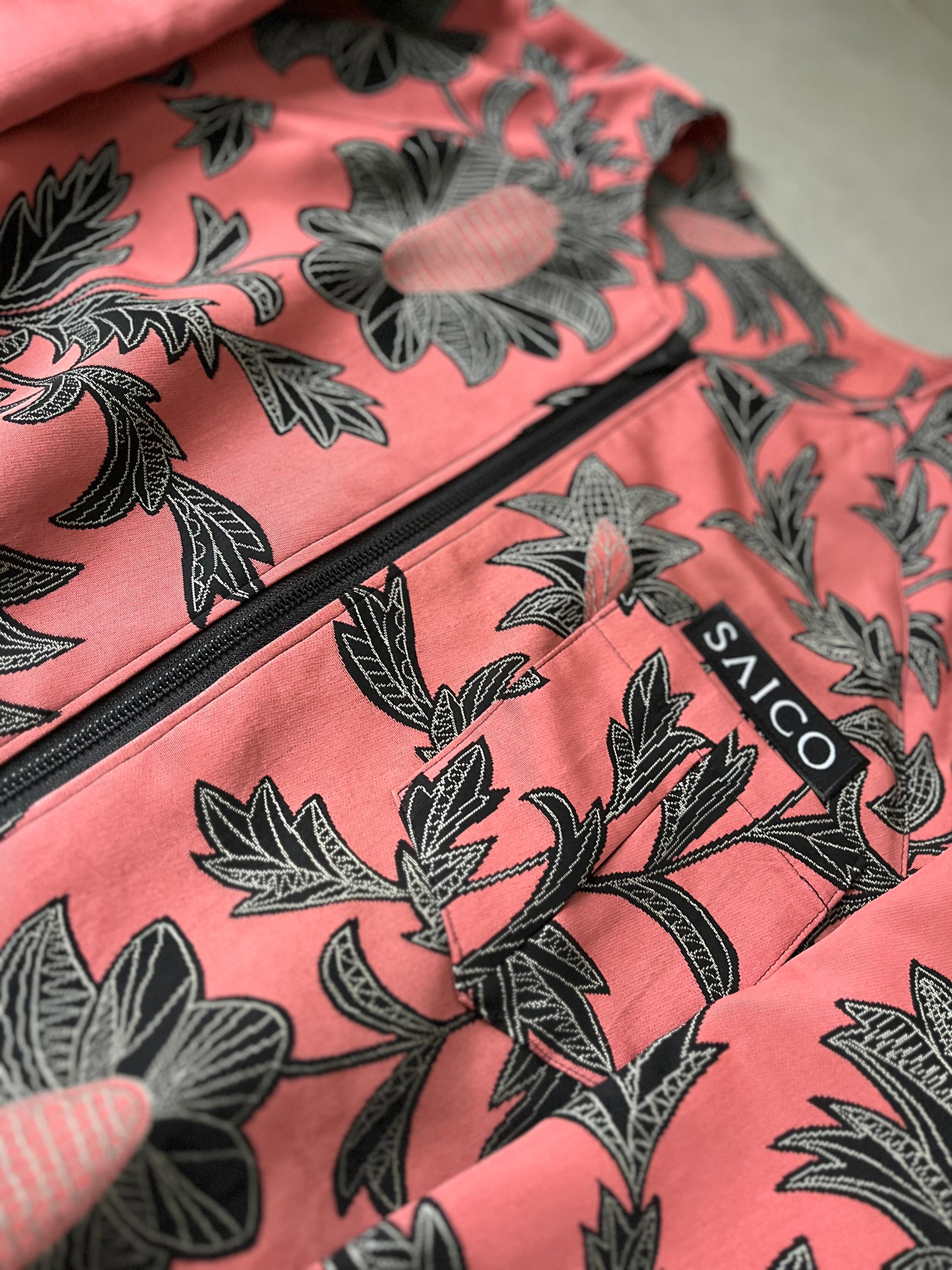 木版画の花パフスリーブジャンパー 着物リメイクジャンパー