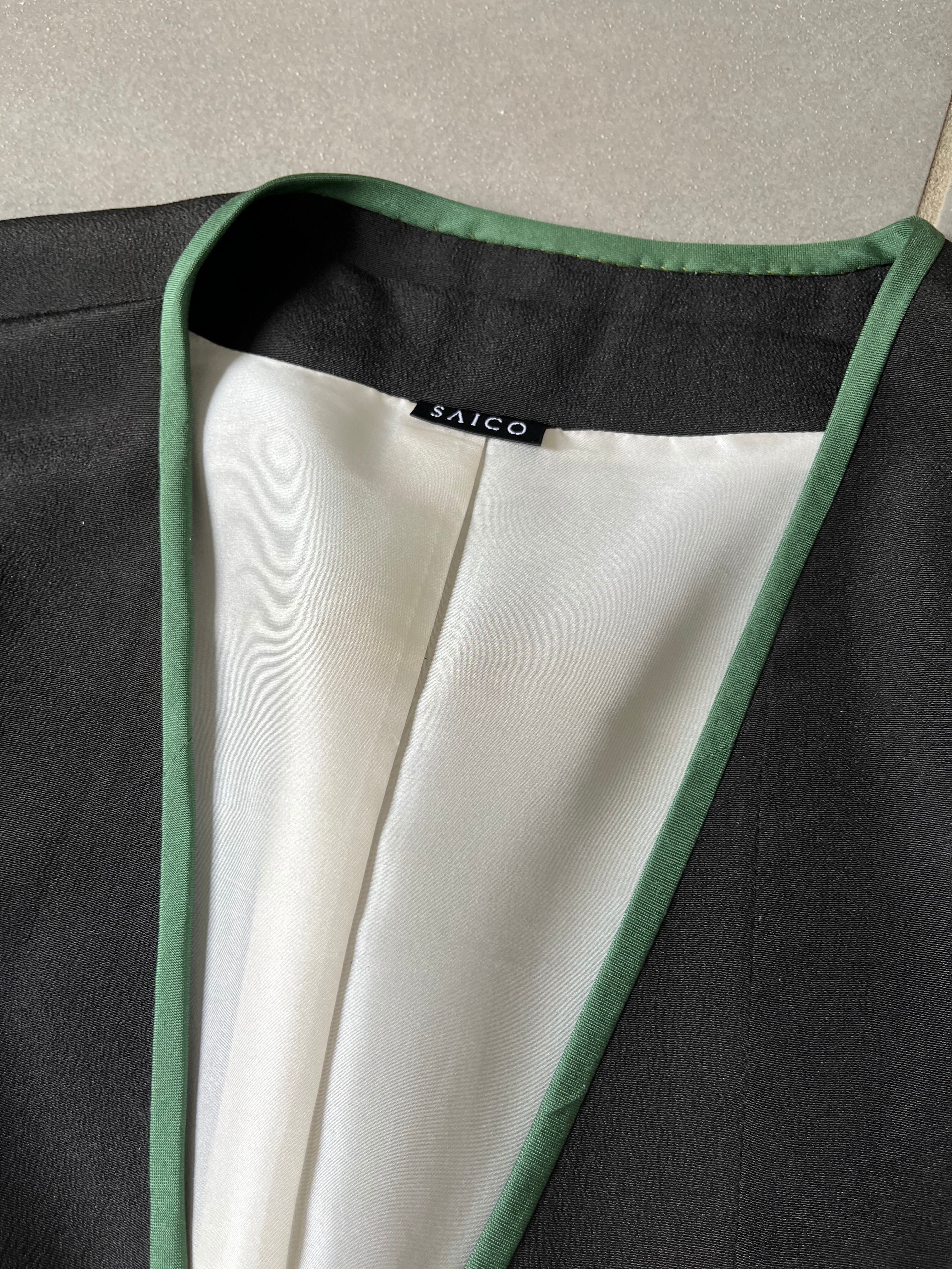 深緑のパイピングと母さんシンボルである茗荷結びを