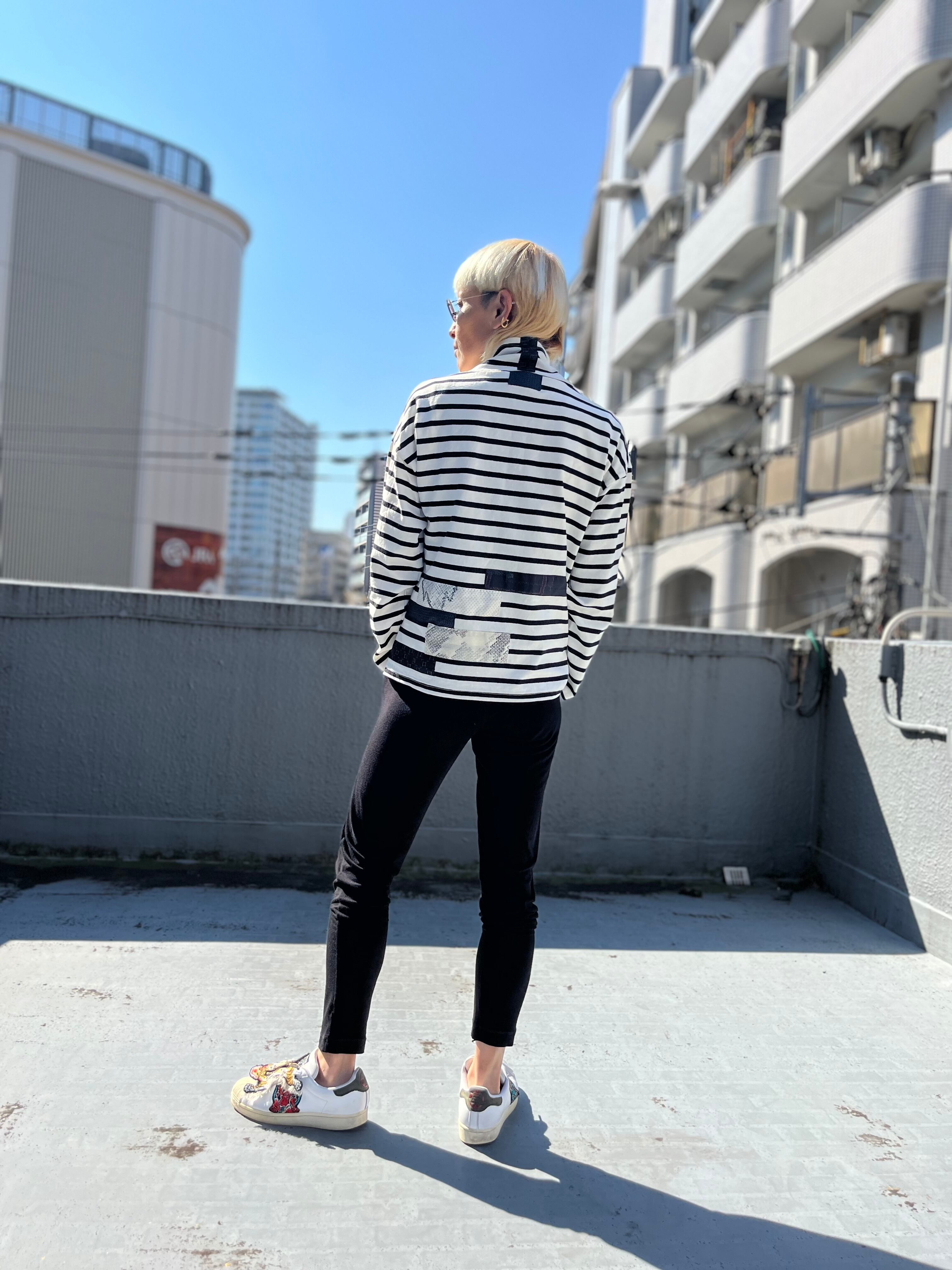 紬パッチワークボーダーシャツ USED 着物リメイク 着物リメイク